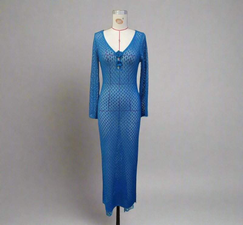 Make waves in the Ocean Bloom Crochet Maxi Dress — a stunning long-sleeve, open-knit beach dress featuring floral front tie details and a figure-hugging silhouette. This lightweight and breathable dress is perfect as a swim cover-up or a standout vacation look. Available in multiple vibrant colors, it’s your go-to for effortless boho elegance and summer chic. Ideal for resort wear, poolside lounging, and tropical escapes.